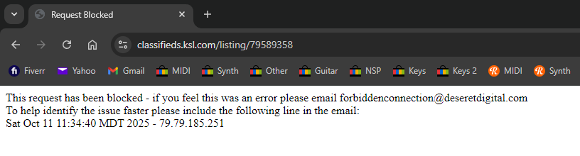 “This request has been blocked - if you feel this was an error please email forbiddenconnection@deseretdigital.com