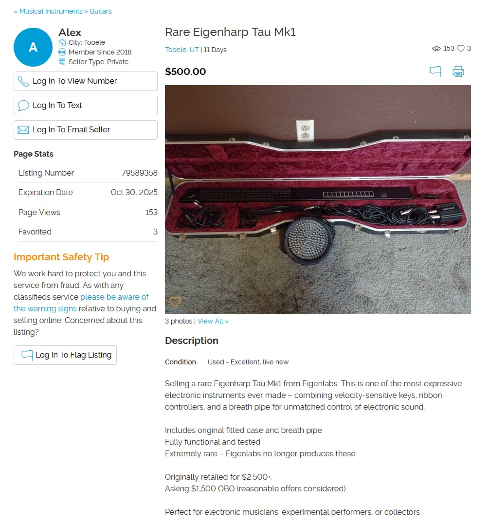 …for info, looks like a Utah Tau was recently offered on KSL Classifieds, but it’s blocked here in the UK. (?)
